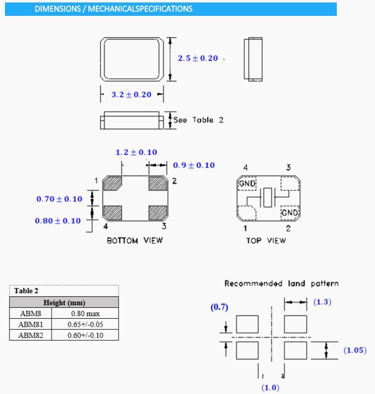 | 編碼 | 品牌 | 型號 | 頻率 | 頻率穩定度 | 頻率容差 | 負載電容 |