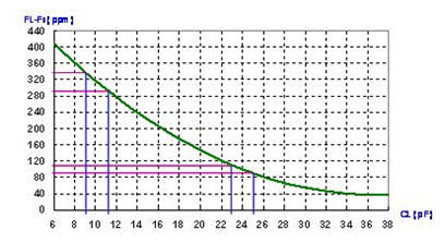 石英晶體共振子應(yīng)用在并聯(lián)振蕩線路上, 振蕩頻率與負(fù)載電容CL有很大的關(guān)系. 這在前面的公式(3)就可以看到. 圖是以并聯(lián)振蕩線路上FL頻率對(duì)負(fù)載電容CL的變化曲線示意圖.