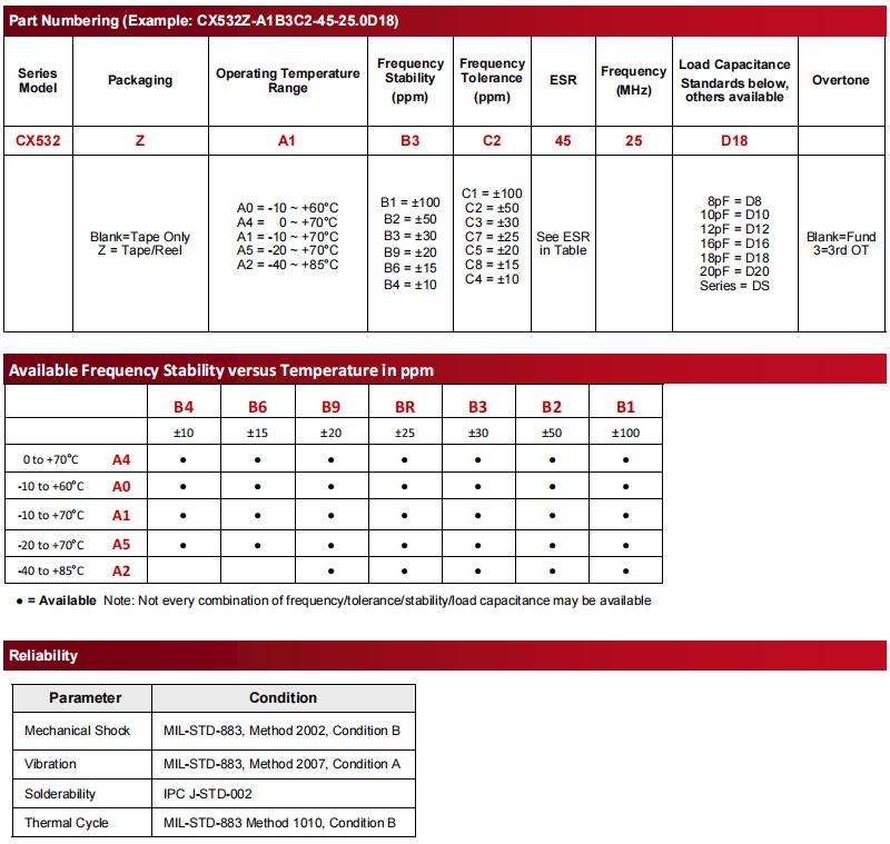 | 物料編碼 | CX532Z-A5B3C5-70-25.0D18 |