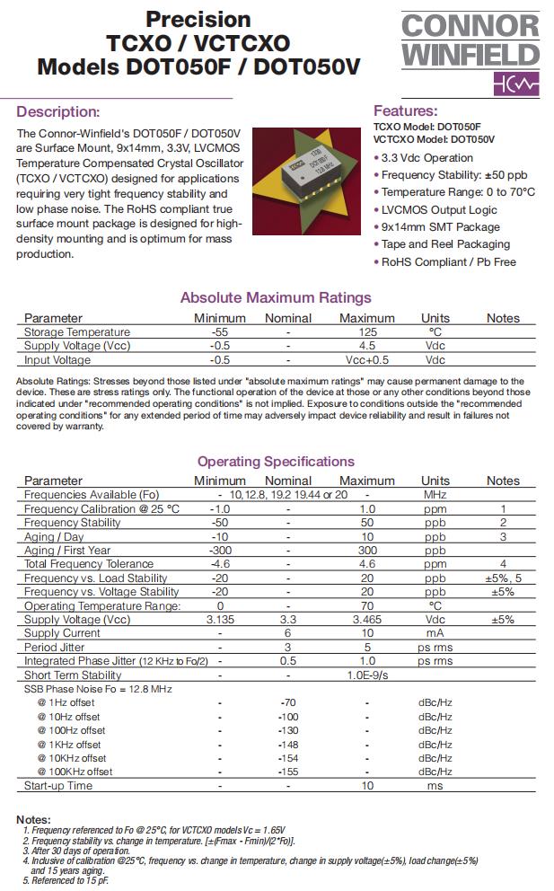 DOT050F-020.0M,TCXO晶振,6G模塊晶振,美國進口晶振,康納溫菲爾德晶振,DOT050F有源晶振,DOT050F-020.0M晶振,石英晶體振蕩器,TCXO晶振,LVCMOS輸出晶振,頻率20MHz,電壓3.3V,工作溫度0~70°C,頻率穩定性50ppb,高頻率穩定性晶振,高品質晶振,6G模塊晶振,光纖通道晶振,航空電子設備晶振,微處理時鐘晶振,電信設備晶振.
