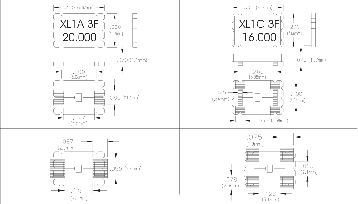 ConnorWinfield晶振,XL-1A-032.0M,6G無線通信晶振 尺寸圖