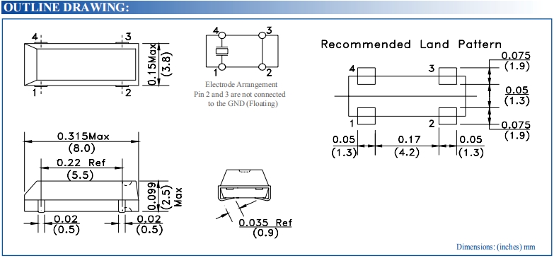 | 激勵功率 | DL | 1.0μW Max. | 推薦:100μW ~ 300μW |