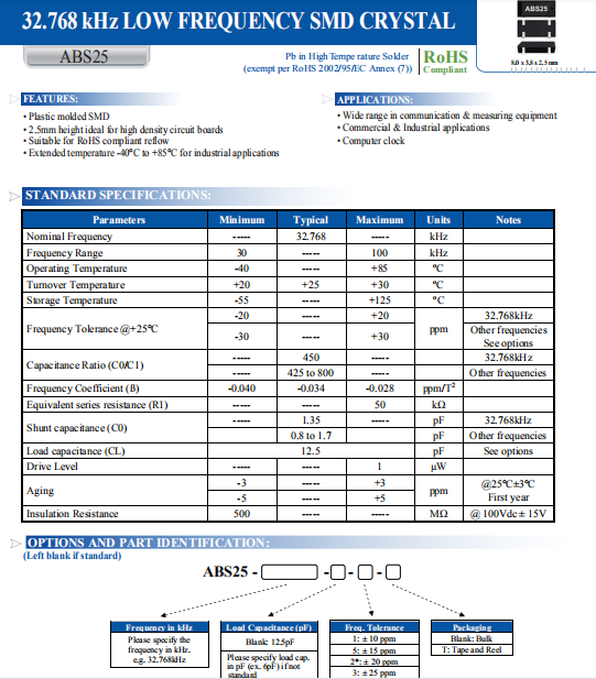 | ABRACON晶振 | 單位 | ABS25晶振 | 石英晶振基本條件 |