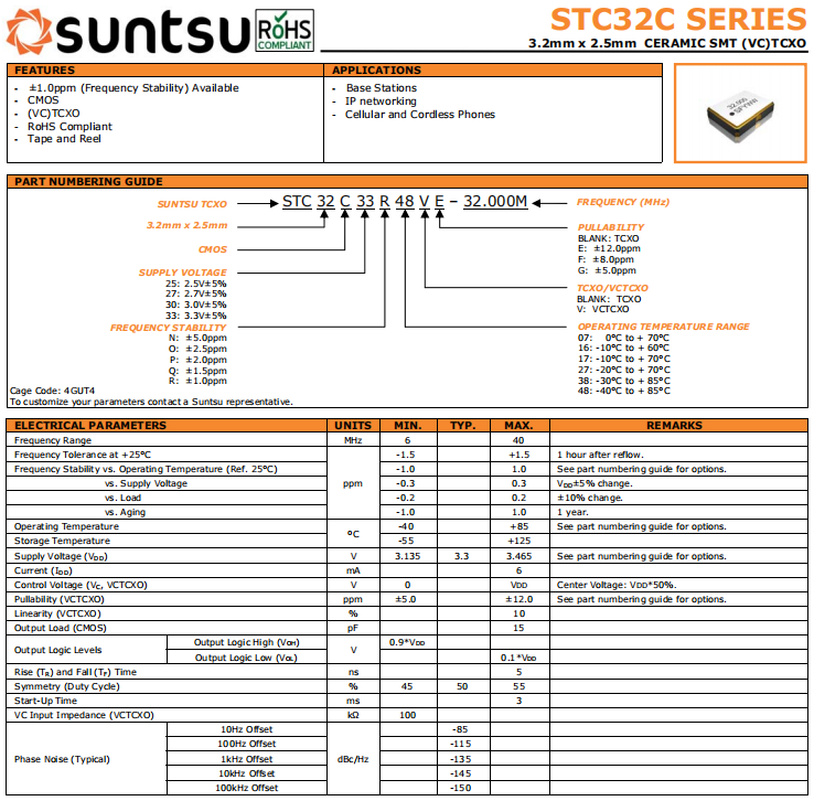 suntsu晶振,STC32C晶振,VC-TCXO振蕩器.3225mm體積非常小的SMDcrystal器件,是民用小型無線數(shù)碼產(chǎn)品的最佳選擇,小體積的晶振被廣泛應(yīng)用到,手機(jī)藍(lán)牙,GPS定位系統(tǒng),無線通訊集,高精度和高頻率的穩(wěn)定性能,非常好的減少電磁干擾的影響,是民用無線數(shù)碼產(chǎn)品最好的選擇,符合RoHS/無鉛.