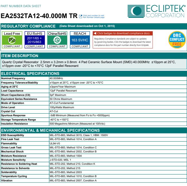 日蝕美國晶振,EA2532TA12-40.000M-TR晶振,無鉛環(huán)保晶振,ECLIPTEK已經實施了中國對危險物質(RoHS)的限制措施,以回應國際社會對鉛(鉛)和其他有害物質在電子部件和組件制造中所使用的有害物質的擔憂。ECLIPTEK公司致力于保護環(huán)境,作為負責任的企業(yè)公民。ECLIPTEK晶振一直在努力解決電子行業(yè)的RoHS和無pb合規(guī)問題。我們的目標是逐步消除不兼容產品的使用,為我們的客戶提供符合要求的替代貼片石英晶振產品,以及發(fā)布的生命周期的結束,從而提供足夠的時間來批準兼容的產品。