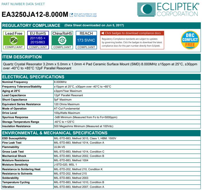 ECLIPTEK晶振將確保其振蕩器和石英晶體諧振器產(chǎn)品及相關(guān)設施滿足甚至超出國家的以及地方環(huán)保機構(gòu)的相關(guān)法規(guī)規(guī)定及其他要求,同時該公司盡可能的參與并協(xié)助政府機關(guān)和其他官方組織從事的環(huán)保活動. 在地方對各項設施的管理責任中,確保滿足方針的目標指標,同時在各種經(jīng)營與生產(chǎn)活動中完全遵守并符合現(xiàn)行所有標準規(guī)范的要求.ECLIPTEK晶振,EA3250JA12-8.000M晶振,智能手機晶振.