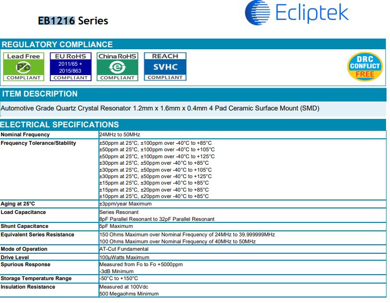 | Ecliptek晶振 | 單位 | EB1212晶振 | 石英晶振基本條件 |