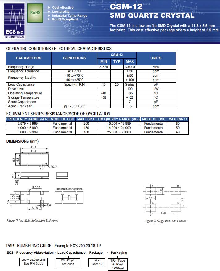 | ECS-40-20-18-TR | CSM-12 | 4MHz | ±30ppm | 20pF | -40°C ~ 85°C |