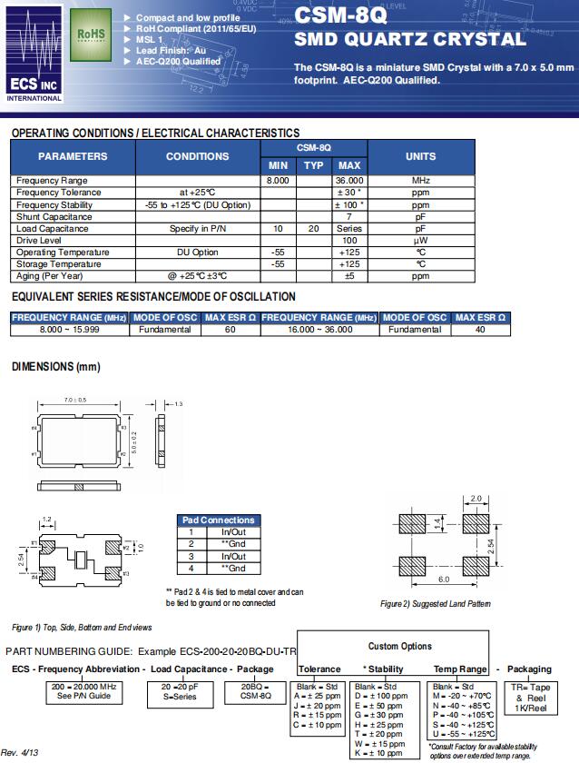 | ECS-80-18-20BQ-DS | CSM-8Q | 8MHz | ±30ppm | 18pF | -40°C ~ 125°C |