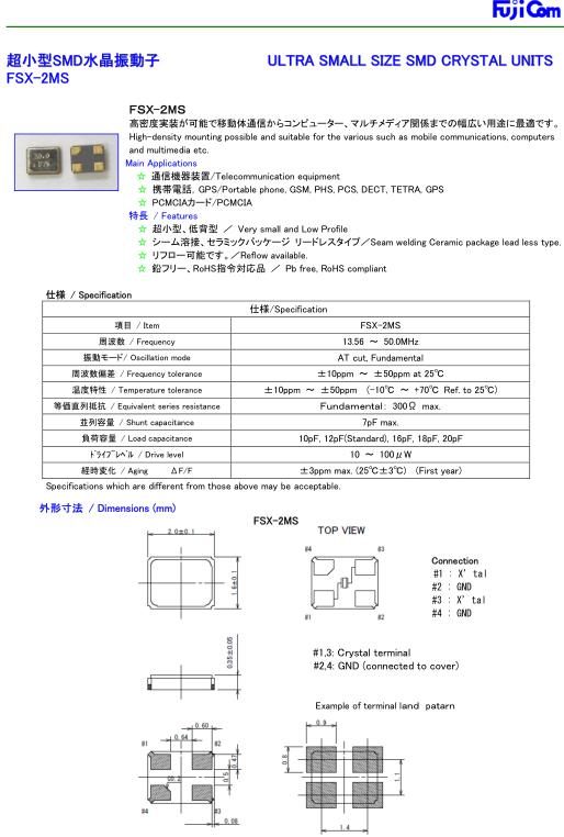 日本進口富士通晶振,FSX-2MS無源諧振器,2016mm通信設備晶振,貼片晶振本身體積小,超薄型石英晶體振蕩器,特別適用于有目前高速發展的高端電子數碼產品,因為貼片晶振本身小型化需求的市場領域,小型,薄型是對應陶瓷振蕩器(偏差大)和普通的石英晶體振蕩器(偏差小)的中間領域的一種性價比較出色的產品.產品廣泛用于筆記本電腦,無線電話,衛星導航SSD,USB,Blu-ray等用途,符合無鉛焊接的高溫回流焊曲線特性.