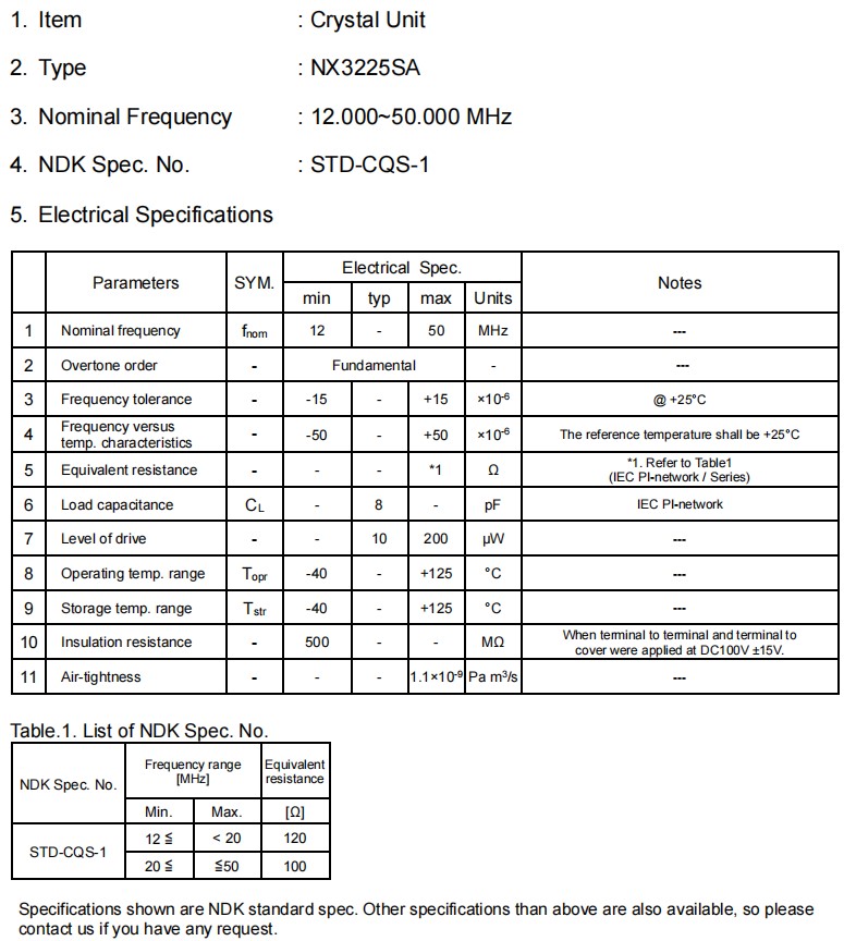 4-SMD,NX3225SA-25.000M-STD-CSR-3,25MHz,8pF,±15ppm,3225mm諧振器,日本進(jìn)口NDK晶振,型號NX3225SA,編碼為:NX3225SA-25.000M-STD-CSR-3,是一款小體積晶振尺寸3.2×2.5×0.55mm四腳貼片晶振,無源晶振,石英晶體諧振器,無鉛環(huán)保晶振,工作溫度范圍:-40℃至+125℃,在極端惡劣的環(huán)境條件下也能具有穩(wěn)定的啟動特性,優(yōu)異的抗環(huán)境性能,如耐熱、振動和抗沖擊性,回流溫度分布(可用于無鉛焊接),符合AEC-Q200,緊湊的表面安裝晶體單元,特別適用于汽車電子產(chǎn)品,汽車電子控制板,汽車動力轉(zhuǎn)向控制器,汽車遙控器,汽車音影晶振,汽車胎壓檢測,通訊設(shè)備,無線網(wǎng)絡(luò),藍(lán)牙模塊,醫(yī)療設(shè)備,平板電腦等應(yīng)用。