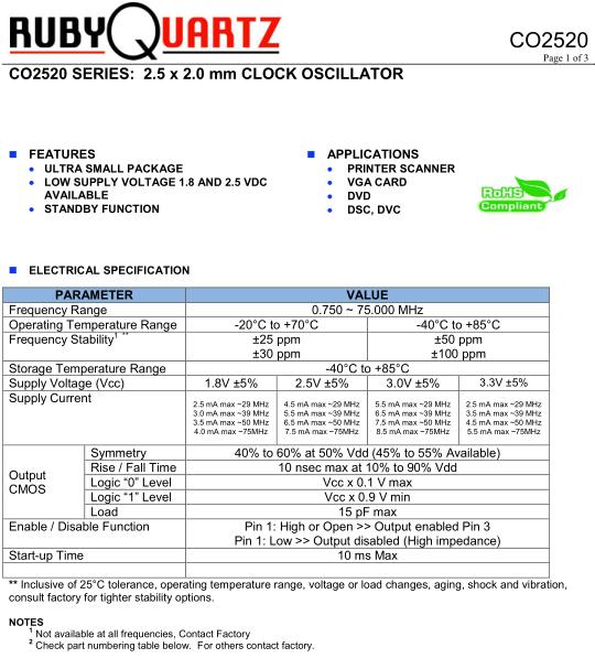 所有石英晶體諧振器和實(shí)時(shí)時(shí)鐘模塊都以IC形式提供.Rubyquartz有源振蕩子,CO2520時(shí)鐘振蕩器,CO2520-12.000-25-50-TR晶振.
