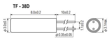 (2) 請仔細處理內外盒與卷帶.外部壓力會導致卷帶受到損壞.SHINSUNG新松晶振,TF-38D插件晶振,TF-38D-25-32.768KHz-12.5pF晶振.