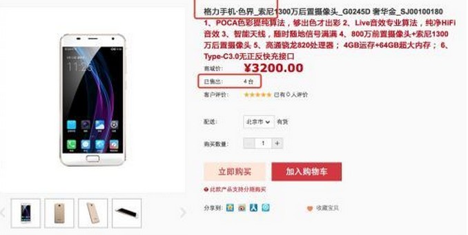 “色界”采用5.5英寸1080p屏幕,搭載驍龍820處理器,內置4GB內存+64GB機身存儲(UFS 2.0),配備前置800萬像素+索尼1300萬像素后置鏡頭,支持前置指紋識別,內置3000mAh電池容量,支持快充3.0,支持Type-C正反插接口,支持Hi-Fi音效,支持雙卡雙待全網(wǎng)通,運行Android 6.0.1系統(tǒng)。 根據(jù)這些參數(shù)來看并沒有什么很大的特別之處,那么“色界”這款手機的銷售情況到底如何呢?