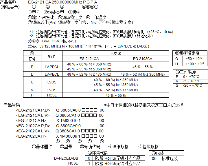 EG-2101CA愛普生差分#貼片晶振#7050mm, LV-PECL 低電平,低功耗,低電流電壓可達到, 電壓2.5V-3.3V愛普生晶振