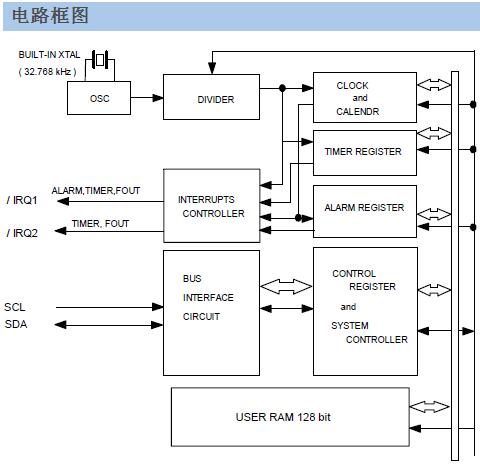 基本性能 時鐘和日歷、報警、定時器、頻率輸出、溫度傳感器與內(nèi)建電源切換等