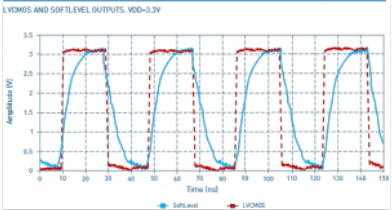 圖2:正常LVCMOS方波信號(紅線)與軟電平LVCMOS輸出信號(藍(lán)線)的側(cè)面輪廓