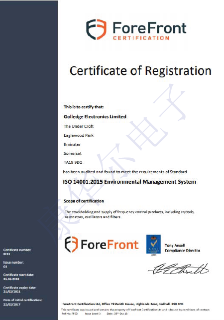 更多>>英國(guó)Golledge Crystal原廠的ISO14001環(huán)境質(zhì)量證書