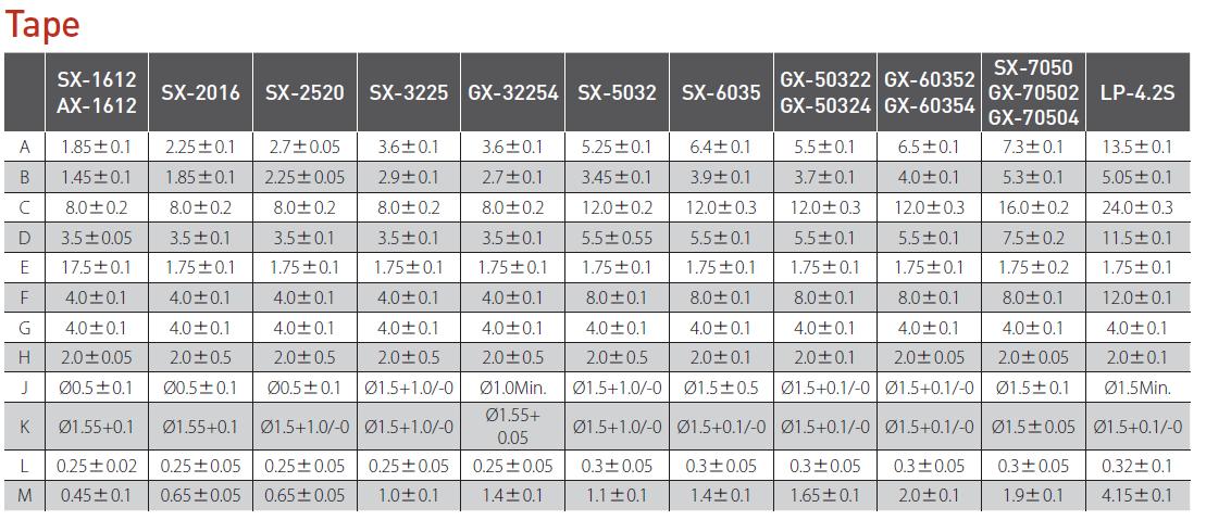 | 晶振目錄 | 希華晶振型號SX-2016mm | |