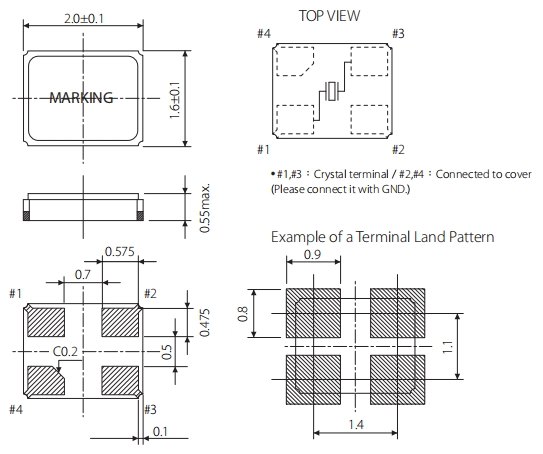 臺灣希華晶振,XTL501100-F98-044,6G以太網晶振尺寸圖